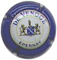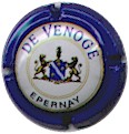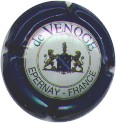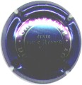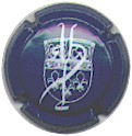 fond bleu foncé métallisé, cercle violet bordé métel contenant l'inscription métal "Champagne - Duval-Leroy", au centre inscription métal "Cuvée des Roys" |
