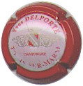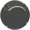 fond bordeaux foncé, cercle or bordé de points, inscription or "Champagne Duval-Leroy", blason central or avec un coeur transpercé d'une flèche, entouré de feuilles de vigne, surmonté d'un heaume, et sous-titré "1859" |