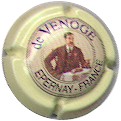 fond beige, cercle noir, inscription noire "Champagne Dumenil - Chigny les Roses", fontaine centrale noire |