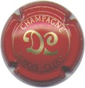 fond rouge, cercle or, inscription or "Champagne Dubois-Cléry", initiales or centrales enlacées "DC" |