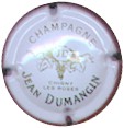 fond blanc, inscription or "Champagne - Chigny les Roses - Jean Dumangin", cartouche central ovale or contenant les initiales or "J" et "D", entouré d'une branche de vigne or contenant grappes de raisins et feuilles |