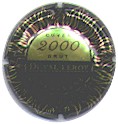 fond noir, contour illuminé par des rayons de soleil or, centrale moitié haute fond or contenant l'inscription noire "Cuvée 2000 Brut", moitié basse fond noire contenant l'inscription or "Duval-Leroy - Champagne" |