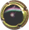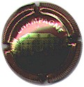 Gardet | bordeaux et or sans nom 80-1-1 /94-1-6 | fond rouge foncé, double cercle or, inscription or "Champagne - Chigny-les-Roses", blason central or contenant un cep de vigne et une couronne à l'envers, surmonté d'un heaume et entouré de rameaux |