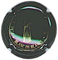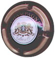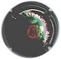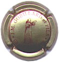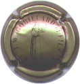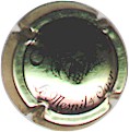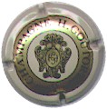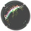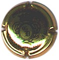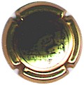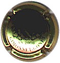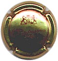 J. M. Gobillard | bronze et noir 84-1-4 /99-2-4 | fond bronze, cercle noir, inscription noire "J.M. Gobillard et Fils - cuvée prestige", motif central noir représentant le moine Dom Pérignon se servant une coupe de champagne |