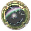 Gaidoz | contour or cuvée An2000 (NR) /94-1-1 | Cuvée An2000 (ne pas confondre avec la plaque précédente), contour or avec alterné inscription "Ludes" et 4 lettres enlacées reprenant les initiales des marques Gaidoz (GFLM pour Gaidoz-Forget, Menu, et Luc Gaidoz), espace avec soleil et lune souriante, reprenant le sujet de l'étiquette An2000 qui représente l'aube se levant sur un village de champagne, inscription en haut blanche "Millésime 1995", insciption blanche en cercle bas "Cuvée du 3ème Millénaire". |