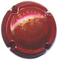 Gardet | bordeaux et or 80-1-1 /94-1-6 | fond rouge foncé, double cercle or, inscription or "Champagne Gardet - Chigny-les-Roses", blason central or contenant un cep de vigne et une couronne à l'envers, surmonté d'un heaume et entouré de rameaux |