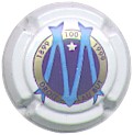 Gardet | Olympique de Marseille (NR) /94-1-6 | fond blanc, cercle or contenant inscription violette "1899 - 100 - 1999 - Droit au but", cercle central fond violet, contenant en haut une étoile or entouré de blanc, grande lettre "M" traversant l'intégralité de la plaque - échange contre 10 |