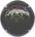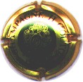 Philippe Gonet & Fils | or-argent et noir 85-1-1 | fond or-argent, cercle noir, inscription noire "Gonet - Le Mesnil sur Oger", motif central noir représentant une grappe de raisin avec feuilles de vigne |