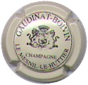 Gaudinat-Boivin | crème 80-2-4 / 95-1-2 | fond crème, cercle noir, inscription noire "Gaudinat-Boivin - Champagne - Le Mesnil-le-Huttier", blason central noir reprenant les armes de Champagne, entouré de 2 lions et surmonté d'une courone |