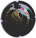 D. gauthier | noir et or gros écusson 81-2-2 | fond noir, inscription or "D. Gauthier - Bar sur Aube", blason central or contenant les armes de champagne, un dauphin, et une frise de 3 fleurs de lys, le tout surmonté d'un rempart |