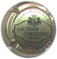 Christophe Gauthier | or 91-1-6/95-2-5 | fond or pâle, en haut demi-cercle noir entourant le mot noir "Champagne, en bas demi-cercle noir entourant le mot "Thouilly", au milieu, cartouche contenant l'inscription noire "Gauthier-Christophe Père é Fils", et coupé en haut par un blason contenant les initiales "GC", entouré de 2 lions et surmonté d'une couronne |