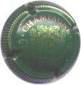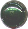 Alain Guillaume | vert 89-1-3 | fond vert foncé, cercle blanc, inscription blanche "Champagne Alain Guillaume", motif central or représentantdes vignes devant une propriété bourgeoise |