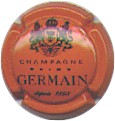 Germain | Orange et noir 83-1-2 /(23) | fond orange, inscription noire "Champagne Reims GERMAIN depuis 1898", blason noir en haut avec 2 lettres enlacées "H" et "G" autour d'une coupe de champagne, entouré de 2 lions couronnés et surmonté d'une couronne |