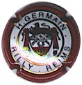 Germain | contour marron 83-1-2 /(28) | contour rosé, fond blanc marron, inscription or "Champagne Reims GERMAIN depuis 1898", blason or en haut avec 2 lettres enlacées "H" et "G" autour d'une coupe de champagne, entouré de 2 lions couronnés et surmonté d'une couronne |