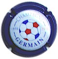 H. Germain & Fils | cuvée du centenaire bleu, blanc, rouge (NR) /(36) | contour bleu, fond blanc bleuté, cercle bleu, inscription bleue "Champagne Germain", à gauche c hiffre bleu 1898, à droite chiffre rouge 1998, ballon central de football bleu, blanc et rouge - échange contre 3 |
