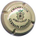 Germain-Pidansat | crème 83-1-4 | fond crème, inscription noire " Champagne Germain Pidansat - Avirey-Lingey", blason central noir stylisé contenant les initiales enlacées "G" et "P", surmonté d'une couronne |