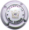 Henri Giraud | blanc, noir et or 83-2-5 /99-1-3 | fond blanc, cercle noir, inscriptions noires "Champagne Henri Giraud" et 2 étoiles, tour crénelée centrale or avec inscription noire au centre "AY" |