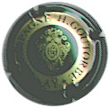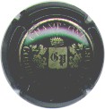 H. Goutorbe | vert foncé 87-1-2 /103-1-4 | fond vert foncé, cercle or bordé noir, avec inscriptions noires "Champagne H. Goutorbe * aÿ *", blason central or sur fond vert foncé contenant 2 lettres "H" et "G" enlacées, entouré d'enluminures |