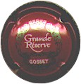 Gosset | rouge et or NR / (31) | contour rouge foncé, fond rouge, enluminures dorées encadrant en bas inscription blanche "Gosset", et au centre inscription blanche "Grande Réserve" |