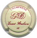 Gosset-Brabant | crème et marron 85-2-4 /101-2-5 | fond crème, inscription bordeaux "Champagne - Gosset-Brabant - AY", initiales manuscrites majuscules bordeaux au centre "GB" |