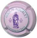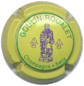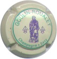 Goulin-Roualet | jaune 86-1-6 /102-2-2 | fond jaune, cercle vert, inscription verte "Goulin-Roualet - Champagne - Sacy", motif central violet représentant un moine entouré de 2 fleurs de lys |