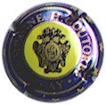 H. Goutorbe | bleu 87-1-3 /103-1-5 | contour bleu étoilé jaune, cercle bleu bordé or contenant l'inscription "Champagne H. Goutorbe - AY", centre fond jaune, blason central or contenant les initiales enlacées "G" & "H", entouré de 2 ailes |