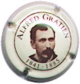 Alfred Gratien | 1841 crème et marron 87-2-5 (NR) /104-1-2 | fond crème, cercle marron, inscription marron "Alfred Gratien - 1841-1885", portrait central marron - échange contre 2 |