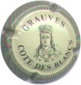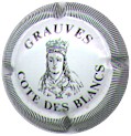 Grauves | blanc 87-2-6 (NR) /104-1-3 | contour strié blanc et noir, inscription noire "Grauves - Cotes des Blancs", motif central noir représentant une tête de reine |