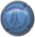 Grauves | bleu 87-2-6 (NR) /104-1-3 | contour strié bleu et noir, inscription noire "Grauves - Cotes des Blancs", motif central noir représentant une tête de reine |