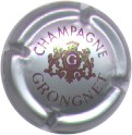 Grongnet | argent 88-1-6 /104-2-3 | fond argent, inscription bordeaux "Champagne - Grongnet", blason central or et bordeaux contenant un "G" argent sur fiond bordeaux, entouré de 2 lions et surmonté d'une couronne |