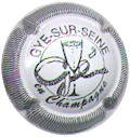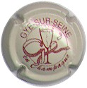 Gye-sur-Seine | crème 89-2-4 /106-1-5 | fond crème, inscription bordeaux "Gye-sur-Seine en Champagne", cercle bordeaux, motif central bordeaux représentant une flûte pleine enlacée dans un noeud |