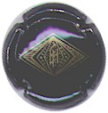 fond or, lozange applati noir central représentant les initiales enlacées "E" & "H" sur fond de bulles, entouré d'un lozange bord bulles entouré de traits noirs, et un second lozange contour rayé entouré de traits noirs. |