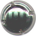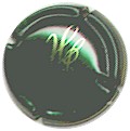 contour vert strié noir, centre fond argent avec cercle bordé noir contenant inscription "Charles Heidsieck", comète de Halley centrale avec étoile verte et queue noire |