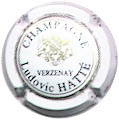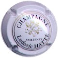 fond blanc, cercle noir, double cercle or, inscription noire "Champagne Ludovic Hatté - Verzenay", blason central or Champagne entouré de 2 lions et surmonté d'une couronne |