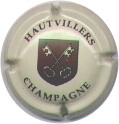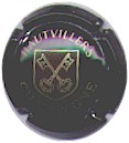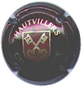fond crème, inscription noire "Hautvilliers", blason central marron et crème avec 2 clés croisées crème |