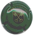 fond vert, inscriptions or "Hautvilliers Champagne", blason central marron avec 2 clés croisées or |