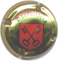 fond marron, inscription or "Hautvilliers Champagne", blason central marron et or avec 2 clés croisées or |