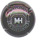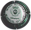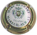 contour vert foncé, fond blanc, inscription verte foncée "Marc Hebrart - Champagne - Mareuil sur Aÿ", blaosn central vert foncé ovale contenant les lettres "MH", surmonté d'une couronne |