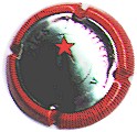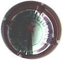 contour rouge strié noir, centre fond argent avec cercle bordé noir contenant inscriptions "Charles Heidsieck", comète de Halley centrale avec étoile rouge et queue noire |