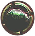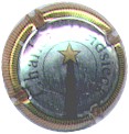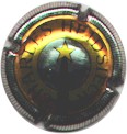 contour or strié noir, centre fond argent avec cercle bordé noir contenant inscription noire "Charles Heidsieck", comète de Halley centrale avec étoile or et queue noire - échange contre 2 |