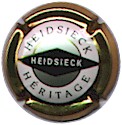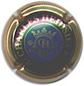 contour or, cercle marron-or bordé noir, contenant inscription noire "Charles Heidsieck - Reims", blason central noir sur fond or contenant les initiales enlacées "C" et "H", surmonté d'une couronne et entouré de fioritures - échange contre 2 |