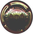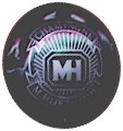 fond métal, motif central noir représentant un grand "H" entouré d'un rectangle noir aux bords coupés - échange contre 3 |