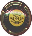contour marron, cercle blanc cassé bordé noir, contenant l'inscription "Champagne C. Herbelet", blason central noir contenant les lettres "CH", entouré d'enluminures, surmonté d'un heaume et souligné par l'inscription "Chaumuzy" |