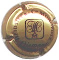 fond or, cercle or entouré blanc avec inscription blanche "Champagne M. Hostomme", carré à coin arrondi blanc entouré de soleil blanc, contenant les initiales blanches "M" et "H" |