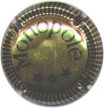 fond or, inscriptions doubles bleues "Heidsieck Co Monopole", blason or et noir, coupé en 2 en travers par une barre 3 lignes or entouré noir, en haut une étoile or sur fond strié or et noir, en bas une étoile or sur fond or, blason entouré de 2 lions, surmonté d'un heaume et légendé noir "à Epernay - France" - échange contre 2 |