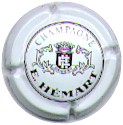 contour vert foncé, cercle blanc cassé bordé noir, contenant l'inscription "Champagne C. Herbelet", blason central noir contenant les lettres "CH", entouré d'enluminures, surmonté d'un heaume et souligné par l'inscription "Chaumuzy" |