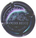fond bleu métallisé, inscription blanche "Champagne - François Heucq - Fleury-la-Rivière", motif central représentant des grappes de raisins |