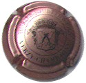 contour or, cercle marron-rosé bordé noir, contenant inscription noire "Charles Heidsieck - Reims", blason central noir sur fond rosé contenant les initiales enlacées "C" et "H", surmonté d'une couronne et entouré de fioritures - échange contre 2 |