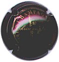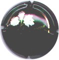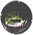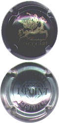 fond noir, inscriptions or "Champagne Jacquart - Reims" avec le "Q" de Jacquart sur le "R" de Reims, cavalier or sur cheval ailé, jouant de la trompette, au verso un cercle métal entouré noir contenant l'inscription double "Perdu", centre un diamant noir traversé par l'inscription "1 Point" - échange contre 4 |
