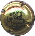 fond marron, cercle or, inscription or "Champagne - Chatillon sur Marne", motif central or représentant une statue style bouddha, contre une colonne, traversée par l'inscription manuscrite "Christian Jacob" |